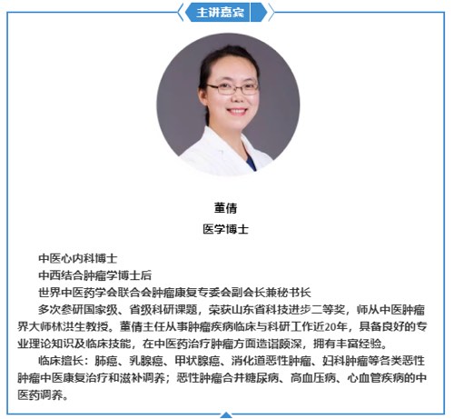 林洪生工作室特邀请京城知名中医肿瘤专家董倩教您《肿瘤患者如何进补》,与专家面对面交流,现场为您答疑解惑,欢迎您的收看!详情咨询4001516811