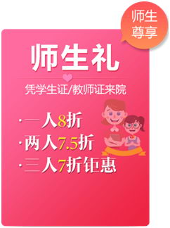 ③应届高考生/学生证/教师证来院即可享受:1人8折、2人7.5折、3人同行7折钜惠