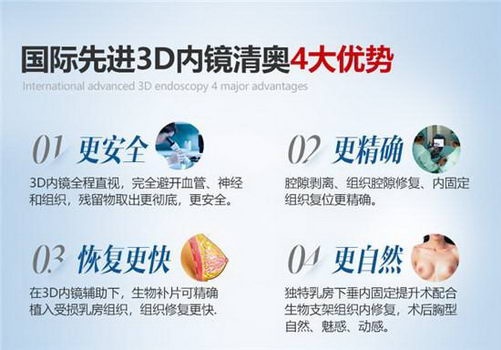 3、恢复更快:在3D内镜辅助下,生物补片可精确植入受损乳房组织,组织修复更快。