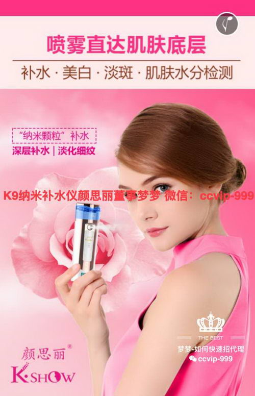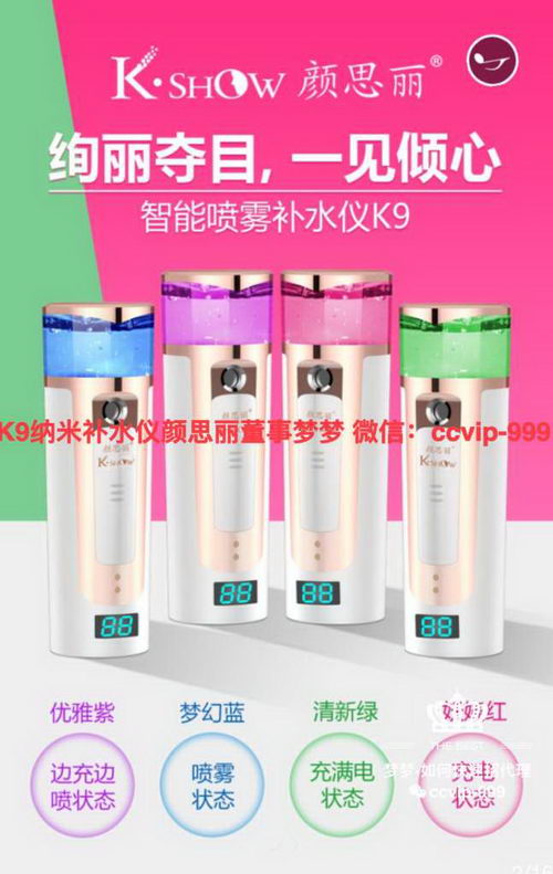 深圳市凯秀科技有限公司是一家专业致力于集设计研发、生产、销售美容仪器,及个人护理产品为一体的生产型企业。K.show颜思丽,是旗下美容仪器的品牌,目前市场上的K.show颜思丽的明星产品是补水仪,K7是经典款;K9是永恒款,即新品。K.show颜思丽补水仪能够帮助疏通毛孔,一段时间的使用后,能够明显减少痘痘和粉刺的生成。不仅是成熟女性,青春少女也可以选择补水仪来呵护肌肤。K9纳米补水仪颜思丽团队董事梦梦 【微信号:ccvip-999】