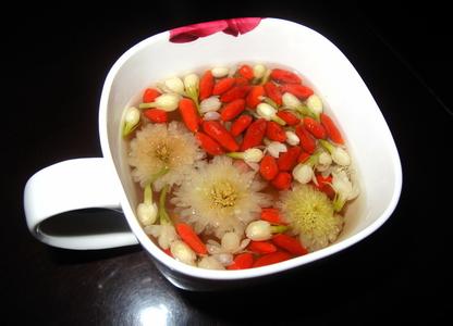 枸杞一小把、红枣3-4粒。 直接将枸杞和红枣放入玻璃杯中,以开水冲泡服用,或者用水煮沸后服用。如果熬夜后口干舌燥很严重,或者火气很大的话,可另加白菊花1-2朵一起冲服。