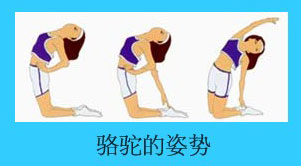 方法:跪地,双手叉腰,吸气身体后弯,保持3—5个呼吸还原。(如果可以把一只手移到脚后跟,尽力使腰向前突出,)(如果可以把左脚移到右脚心。右手向上举起,保持同样呼吸,换另一侧相同。)