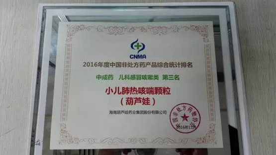 此次年度盛会,葫芦娃药业集团载誉滔滔、硕果累累,连夺四奖,引行业瞩目。会上,葫芦娃药业集团明星产品葫芦娃牌小儿肺热咳喘颗粒荣登2016年度中国制药工业中药感冒咳嗽类非处方药销售前3强;葫芦爸牌肠炎宁胶囊跃居2016年度中国制药工业中成药消化类产品非处方药销售前8强;葫芦爸牌奥美拉唑肠溶胶囊位列2016年度中国制药工业消化类产品非处方药销售前15强。葫芦娃药业集团挺进中国OTC市场2016年度制药工业百强企业品牌榜前三十强。