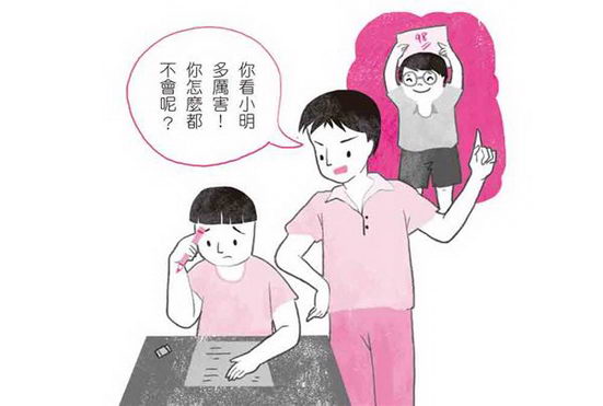 有些家长以为跟孩子说“别人都做得到,你为什么不行?”可以激发孩子见贤思齐的动力;因此会拿兄弟姊妹、隔壁家的小明、朋友家的小华,甚至亲戚家不很熟悉的甲乙等等,来和孩子比较。殊不知,“为什么你不能像OOO那样”、“OOO都可以…,你也应该要…”之类的说法,只会让孩子越发挫折、更觉得自己不好,每次碰到被拿来比较的对象时,就马上会想到自己比不上人家的地方。