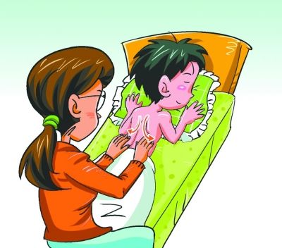 如果你细听,孩子们的咳嗽声总是此起彼伏,特别有痰时,除了一般治疗外,可加用拍背的方法:家长手指轻度曲屈,轻用力从背部由下往上拍背,每次双侧交替拍,每次拍约10分钟,每天坚持拍两次,可帮助痰液排除,促进恢复。