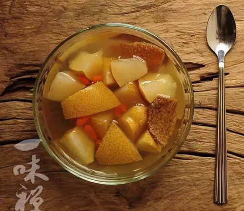 2. 将梨块、陈皮、枸杞一起加入锅中,倒入适量清水,开大火至水开转小火慢煲1小时左右;
