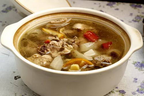 3. 锅内倒入适量清水,放入鸭肉、陈皮、红枣、枸杞、姜片和米酒,大火煮沸,然后转小火煲两小时,下盐调味即可食用。