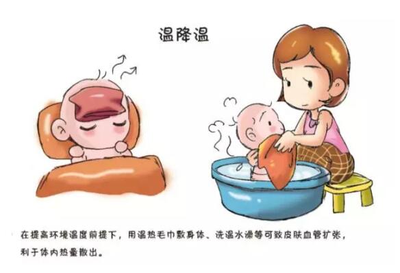 毛巾的温度最好控制在37℃左右。用温湿毛巾擦拭额头、颈部、腋下和四肢等部位。毛巾擦身体降温的原理是让皮肤血管扩张,让他体内产生的热量及时散发出去,而且用温湿毛巾擦拭身体时,沾在身上的水蒸发,也会带走一部分热量。