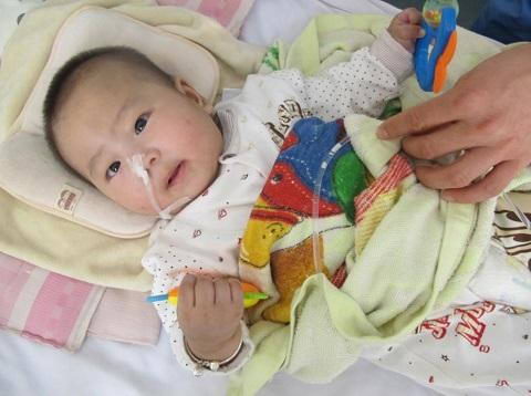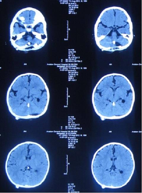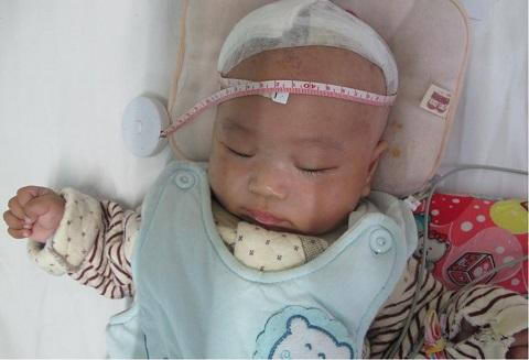 妈妈发现他高烧不止,不停的吐奶,送到省儿童医院后确诊为化脓性脑膜炎,从此便开始不停的接受腰穿。然而4天后,孩子突然出现了颈部强直的症状,头CT显示严重的脑积水,脑组织已经萎缩。