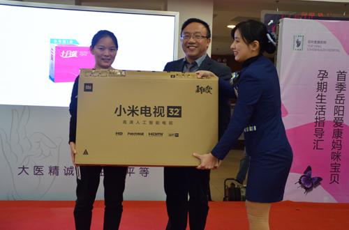 岳阳爱康医院发改部总监陈健和特等奖孕妈合影