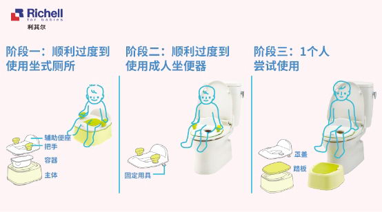 Amy老师说,“培养宝宝自主如厕,不用死板要到宝宝一岁后才教,只要宝宝能听懂父母的话,如厕时间有规律,就可以开始使用儿童小马桶了。建议使用多功能的儿童小马桶,可以先当小板凳,然后顺利如厕后,还能过渡到家用马桶上使用,好像利其尔Richell的儿童小马桶就可以。”