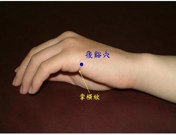 可以按压后溪穴,后溪为人体手太阳小肠经上的重要穴道之一,穴位在在手尺侧,第五掌骨小头的后下方,握拳时,当远侧掌横纹头上方的凹陷处(如下图)。功用主治腰痛。