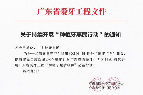 广州免费种牙医院-据了解,广东省爱牙工程种植牙惠民行动是由广东省医学美容口腔学会联合广东省爱牙工程、广东省夕阳红慈善基金会、广大口腔医院以及知名电视媒体等机构共同发起,至今已经走到了第十五季。