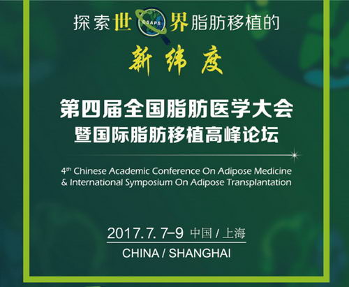 昔日辉煌续写更加灿烂篇章,千人大会空前盛况再现浦江之滨。万众瞩目的“第四届全国脂肪医学大会”将于2017年7月7~9日在上海国际会议中心隆重举行。