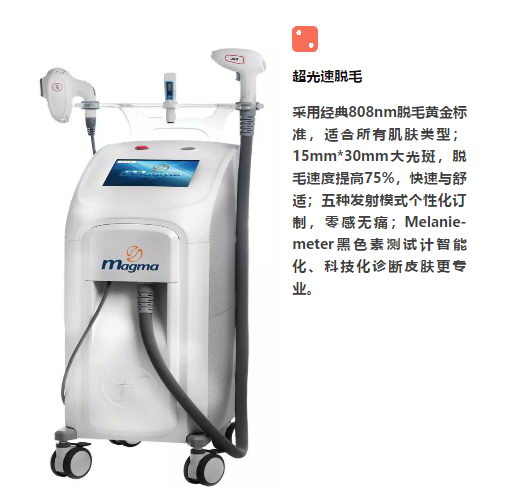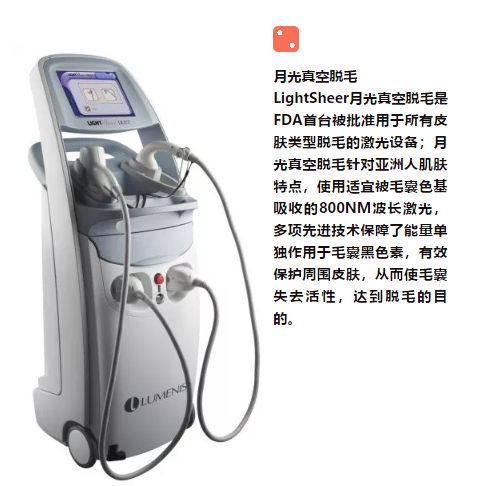 毛发净肤专区引进由国际仪器巨头旗下知名设备,多达4款:美国科医人LightSheer Duet月光真空脱毛,以色列飞顿超冰脱毛、华尔兹冰点脱毛,以色列美迪迈超光速脱毛。