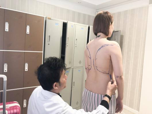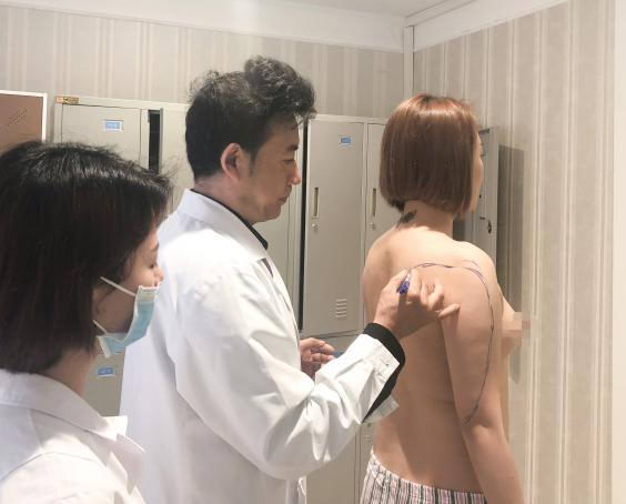 作为案例,我要好好记录自己的术前术后效果,我朋友给我拍的照片,院长给我画线中。有点羞羞。
