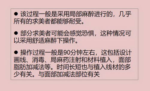 用药取材:线材埋置选择悬吊线、平滑线、提眉线,脂肪则用面部吸脂和面部填充。