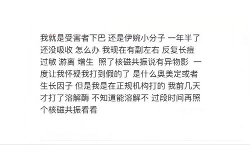 在注射后如果出现增生、无法溶解的现象,求美者务必查清自己注射的是否为正品玻尿酸,目前市面上所有正品玻尿酸均可被正常溶解,所以为了自己的安全,呼吁所有求美者在注射前一定要亲自验证注射物的真伪,盲目轻信他人不实言论,是对自己的安全和美貌不负责任的行为。