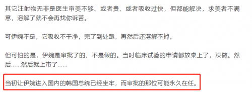 美联萌公众号近期发布的一篇名为《关于伊婉》的文章中直指伊婉玻尿酸进入中国前没有进行任何临床试验,且审批伊婉进入中国市场的是某位现正在服刑的韩国前总统。